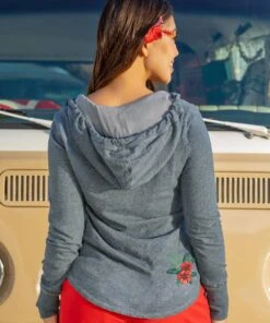 Hibiscus Tapa Band – Gray Heather Long Sleeve Harmony Hooded T