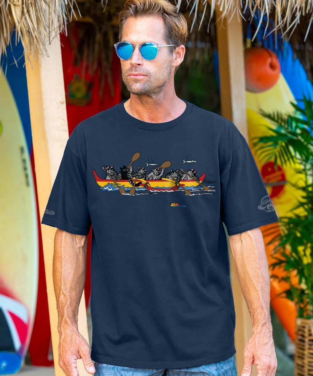 Set sail for silliness with this crazy crew of Kliban cats. You may not get to where you’re going but you can be sure you’ll have a lot of fun not getting there! Made using 100% combed ring-spun cotton, this shirt will keep you feeling cool and comfortable all year long. We only use environmentally friendly water-based inks that penetrate the material’s fiber resulting in more vibrant colors, softer feel and artwork that doesn’t crack or peel. Plus, it is proudly printed in the United States for quality you can see and designs-just like Kliban’s cats-that stand the test of time as well as the bond between Crazy Shirts and The Cat has endured for all these years.
