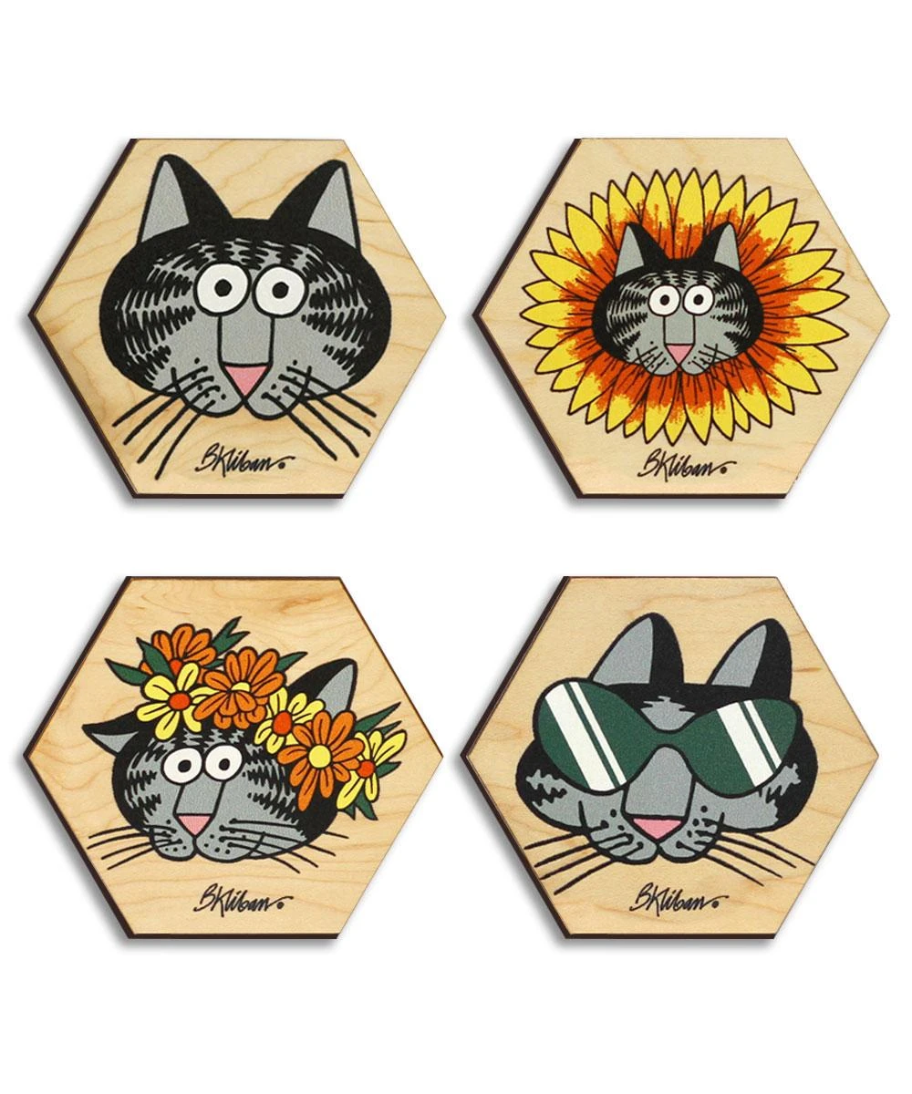 Drink in the nuttiness of some our favorite Kliban cats with these smiling-inducing coasters. Made from USA sourced Maplewood, these coasters protect your furniture from drink rings and bring a natural feel that pairs perfectly with the fun imagery of B.Kliban’s cats.