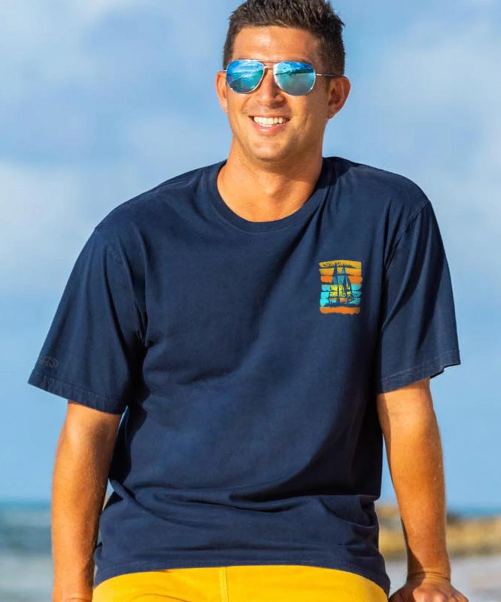 Our original artists never fail to amaze with their ability to convey the beauty of the islands. This sunset comes to life with tropical hues that add mystery and majesty to the island silhouettes. Made from 100% cotton that is ring-spun then combed to remove impurities, this fabric is luxuriously soft and lightweight yet incredibly strong. We only use environmentally friendly water-based inks that penetrate the material’s fiber resulting in more vibrant colors, a softer feel, and artwork that doesn’t crack or peel. Plus, it is proudly printed in the United States for quality you can see and designs that stand the test of time.