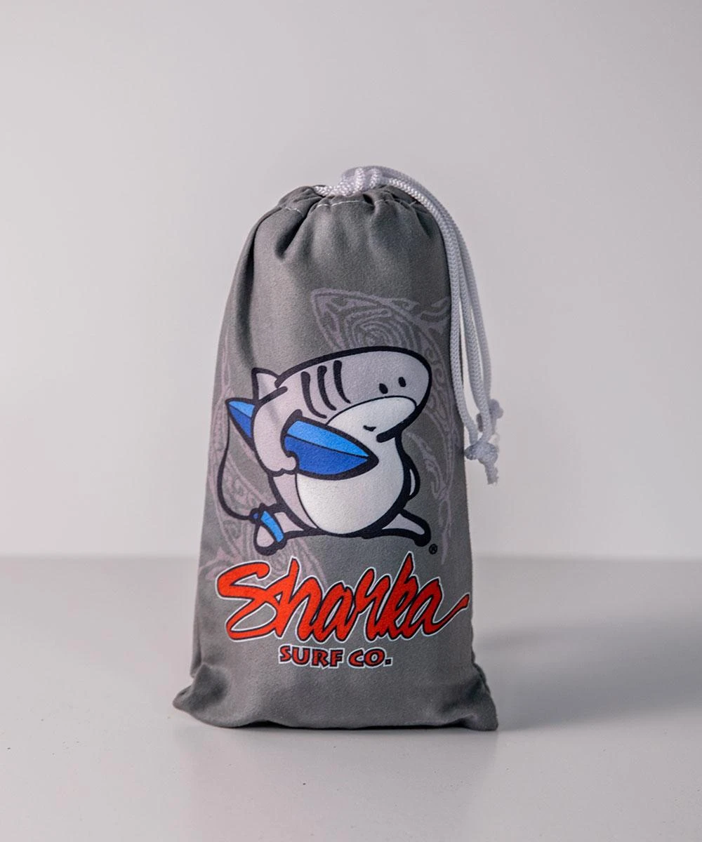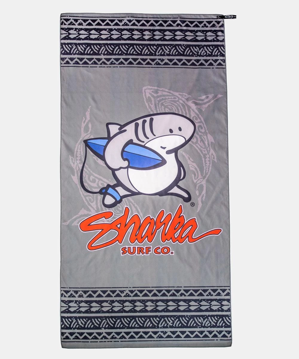 Surfing Sharka always represents the good time aspect of living the Aloha lifestyle. Paired with tribal patterns and shark imagery, Sharka also signifies a connection to nature and the past that gives this amazing design a touch of humor and history that can’t be beat. This towel is made with plush microfiber material that’s oh so soft against your skin and dries super-fast so, when it’s time to leave, your stuff doesn’t get damp. Extra long and wide, it’s great for laying out and, unlike terry towels, it won’t trap sand so you’ll get less in your bag, car and home. It has great Crazy Shirts graphics and comes in its very own tote to make a day by the water even more fun and easy. Towel measures 63″L x 31″W. Printed pouch measures 6″L x 9″W