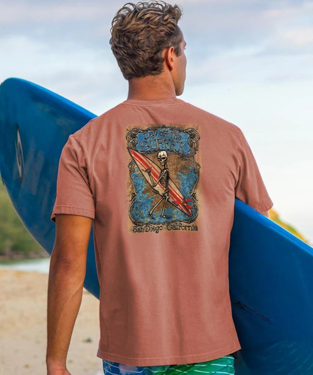 The Day of the Dead celebration in Old Town and California surf culture are important parts of what makes San Diego the wonderful place it is. Put ’em both together and you’ve got a rad new shirt that you’ll be dyeing to wear. Made using our exclusive specialty dyeing process that uses real chile peppers and featuring 100% combed ring-spun cotton, this t-shirt has 50+ SPF protection to keep you feeling cool, calm and protected all year long. Plus, it is proudly printed in the United States for quality you can see and designs that stand the test of time.
