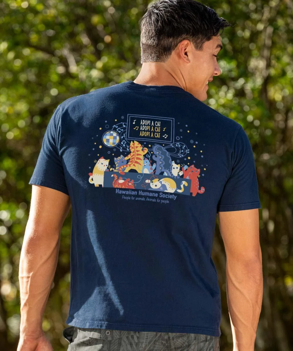If you love animals, the caterwauling from these kitties is music to the ears. They’re singing about the joys of adopting a pet from a local shelter, which brings with it a lifetime of love, fun and companionship. Sounds good, doesn’t it? For Over 40 years, we’ve collaborated with the Hawaiian Humane Society and its mission to help island animals live healthy, happy lives. Wear your heart on your sleeve and celebrate furry friends with our Adopt-A-Cat Tee Collection. Made from 100% cotton that is ring-spun, then combed to remove impurities, this fabric is luxuriously soft and lightweight yet incredibly strong. We only use environmentally friendly water-based inks that penetrate the material’s fiber resulting in more vibrant colors, softer feel and artwork that doesn’t crack or peel. Plus, it is proudly printed in the United States for quality you can see and designs that stand the test of time.