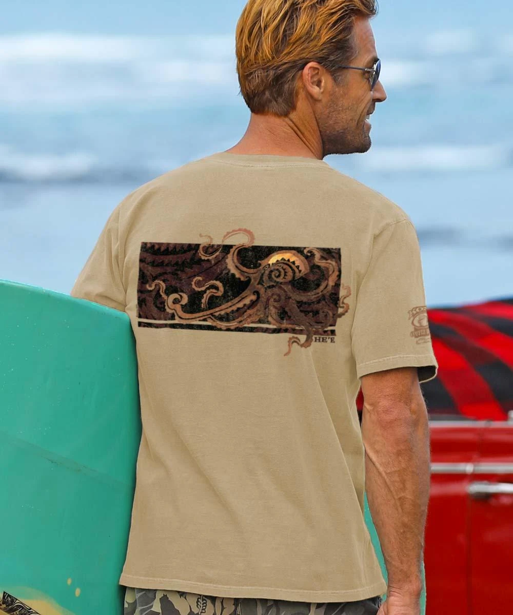 Forget the sharks, turtles and rays. It’s about time the brave octopus got some attention. One of the coolest creatures in the sea, this 8-legged all-star looks amazing on this dark and mysterious band. Made using our exclusive Kona coffee specialty dyeing process and featuring 100% combed ring-spun cotton, this t-shirt has 50+ SPF protection to keep you feeling cool, calm, and protected all year long. We only use environmentally friendly water-based inks that penetrate the material’s fiber resulting in more vibrant colors, softer feel and artwork that doesn’t crack or peel. Plus, it is proudly printed in the United States for quality you can see and designs that stand the test of time.