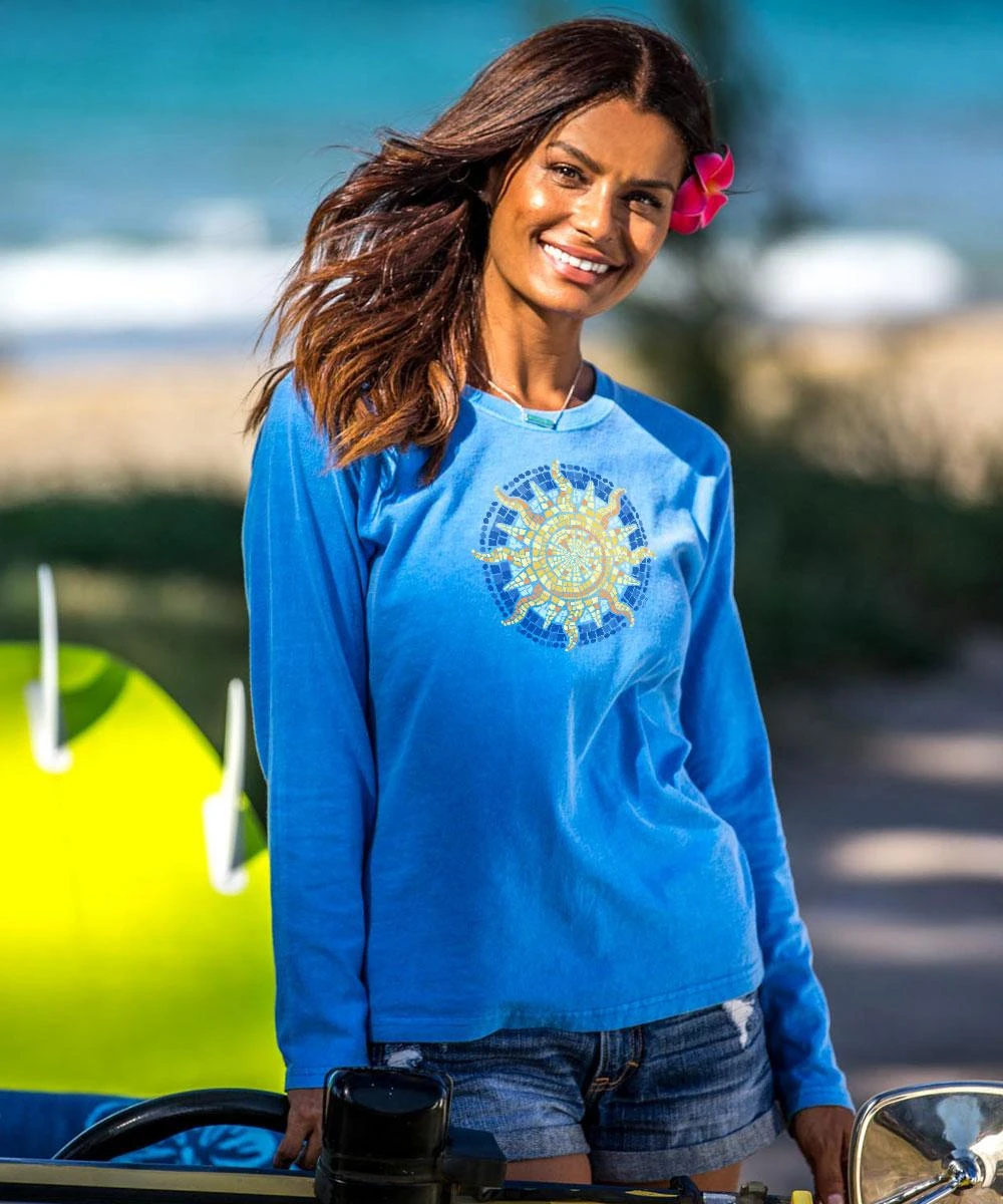 Spun Sun Mosaic – Blue Hawaii Dyed Long Sleeve Crewneck T-Shirt