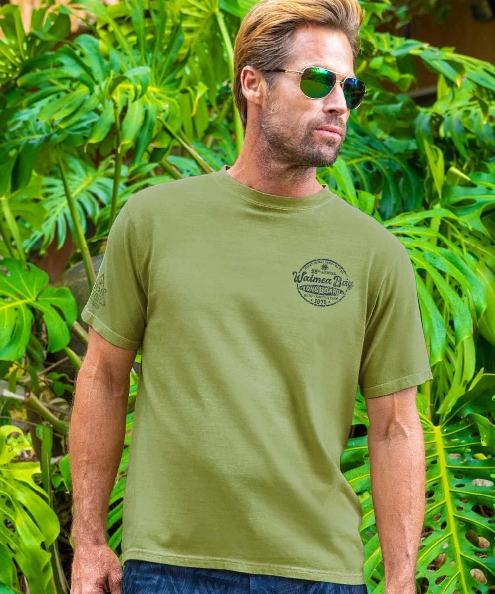 Many consider Waimea Bay as the place where big wave surfing was truly invented. It was once considered too big and dangerous to surf until a few adventurous souls proved everyone wrong and rode the bay’s monster curls. Be as cool and crazy as them with this awesome hemp dyed tee. Made using our exclusive specialty dyeing process that uses real industrial hemp and featuring 100% combed ring-spun cotton, this t-shirt has 50+ SPF protection to keep you feeling cool, calm, and protected all year long. We only use environmentally friendly water-based inks that penetrate the material’s fiber resulting in more vibrant colors, softer feel and artwork that doesn’t crack or peel. Plus, it is proudly printed in the United States for quality you can see and designs that stand the test of time.